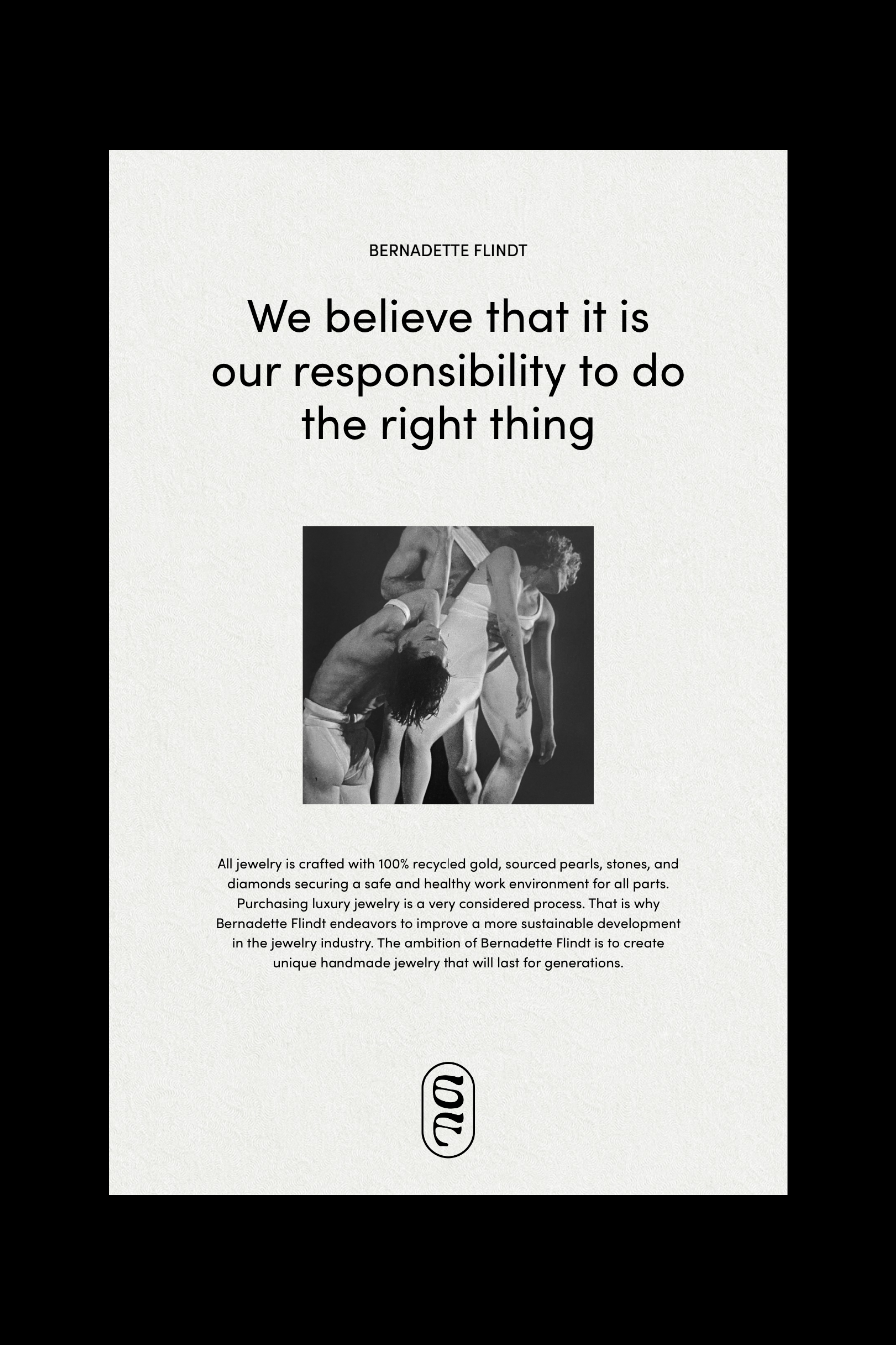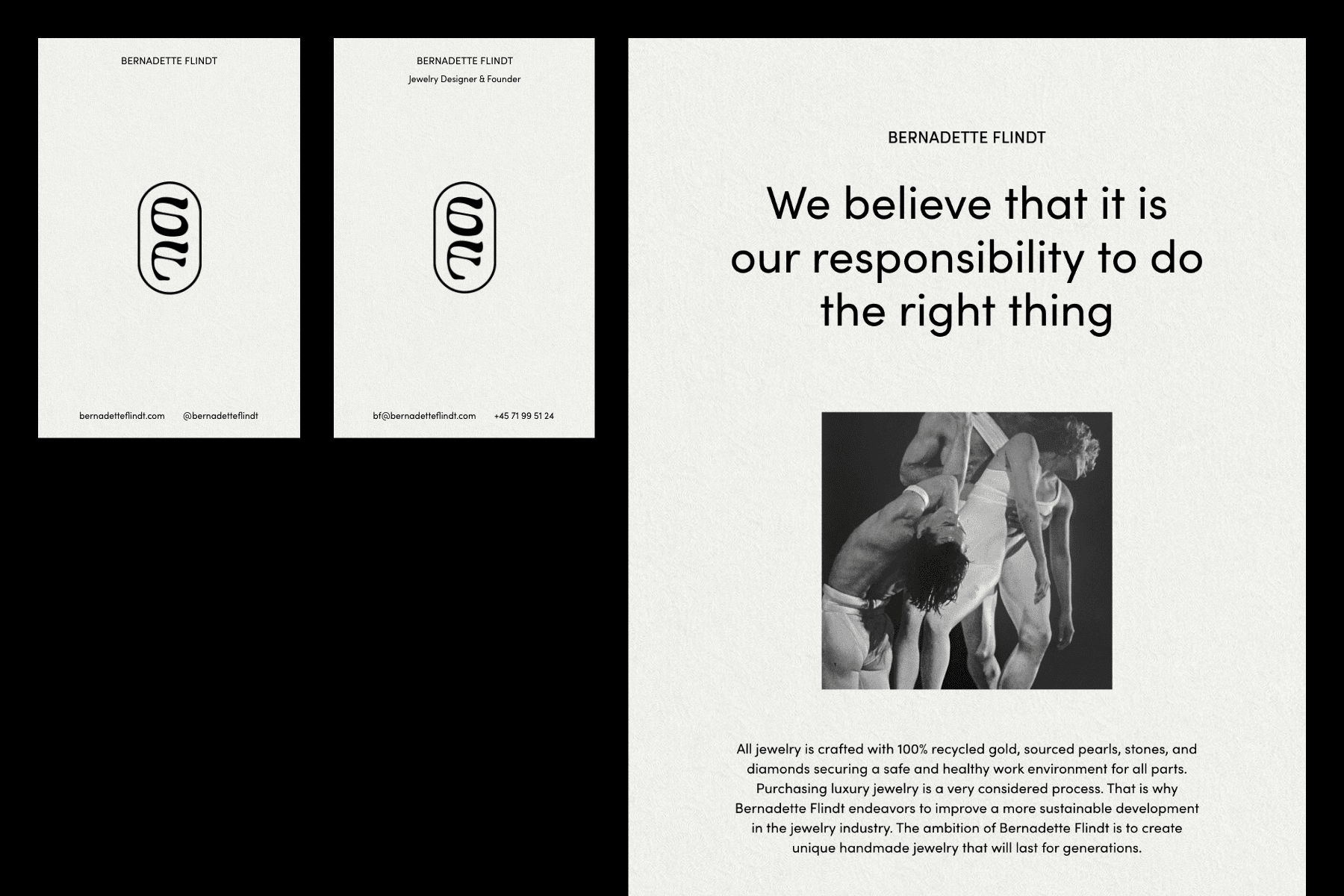 Brand identity, print materials, and E-Commerce for the sustainable jewelry brand Bernadette Flindt. The visual identity captures the brand's organic, handmade and ballet-inspired designs. bernadetteflindt.com