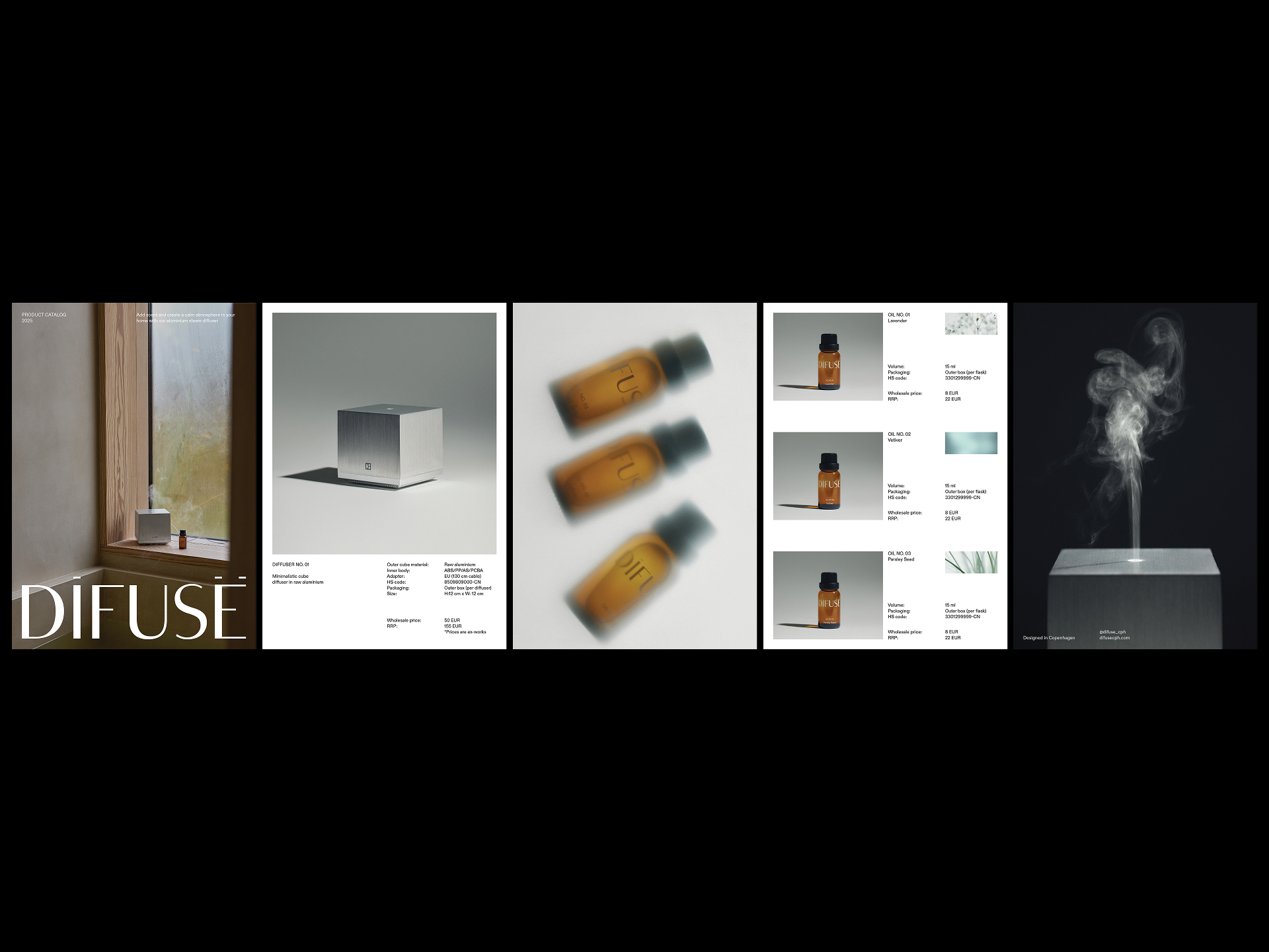 Brand identity and e-commerce for diffuser brand DIFUSË. a Copenhagen based studio offering a collection of high-perfomance aromatic steaming scent diffusers with the multipurpose of creating a better indoor enviroment and the aromatic benefits of adding scents to your home.
