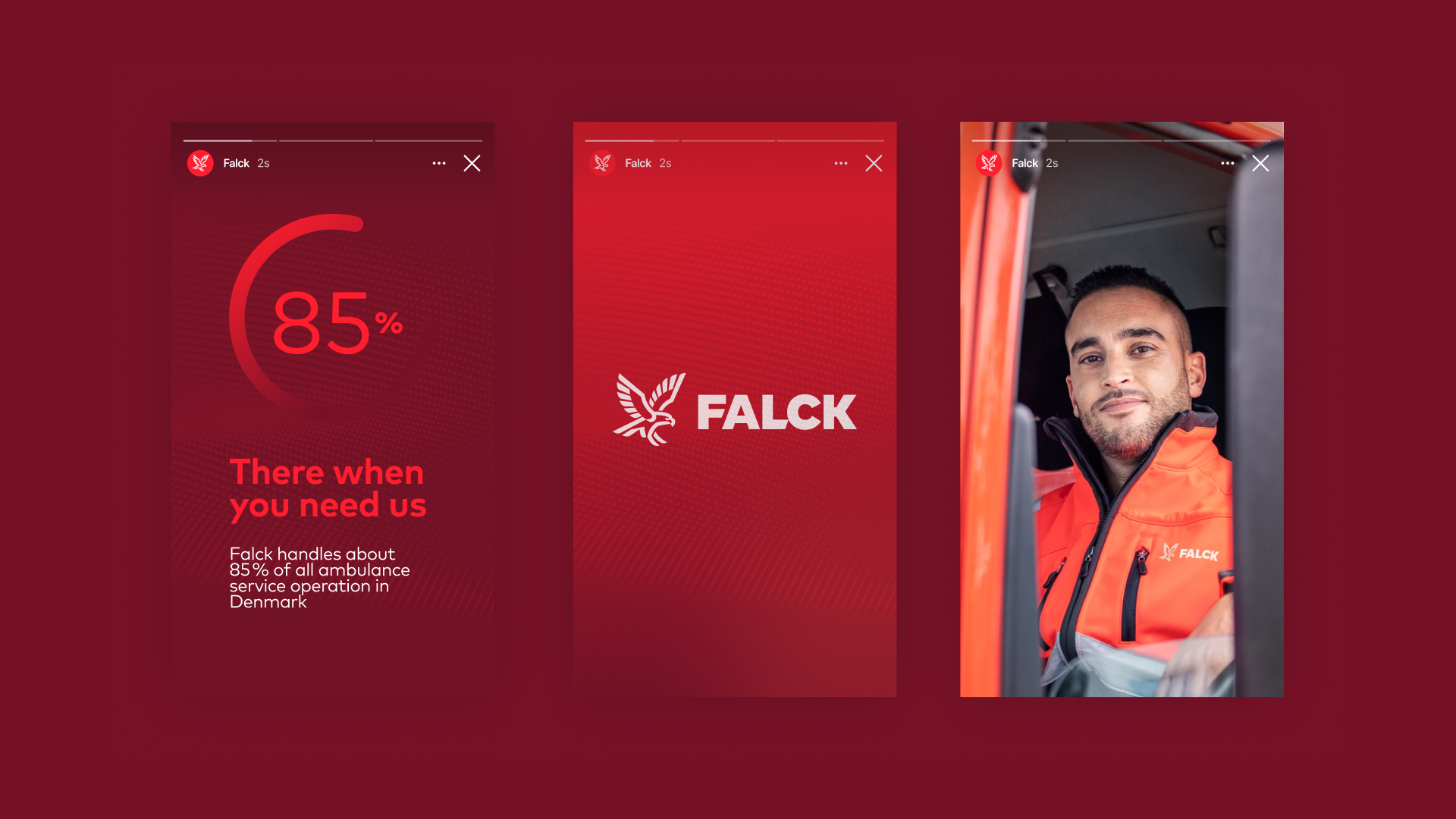 Falck, a global leader in emergency response and healthcare, asked Make® to create a unified brand platform. We updated the falcon symbol and kept Falck’s signature red in two primary shades. With a digital presence across 30+ countries—including websites, apps, and videos—we developed a digital design system featuring dynamic layouts and precise motion to streamline their online experience.