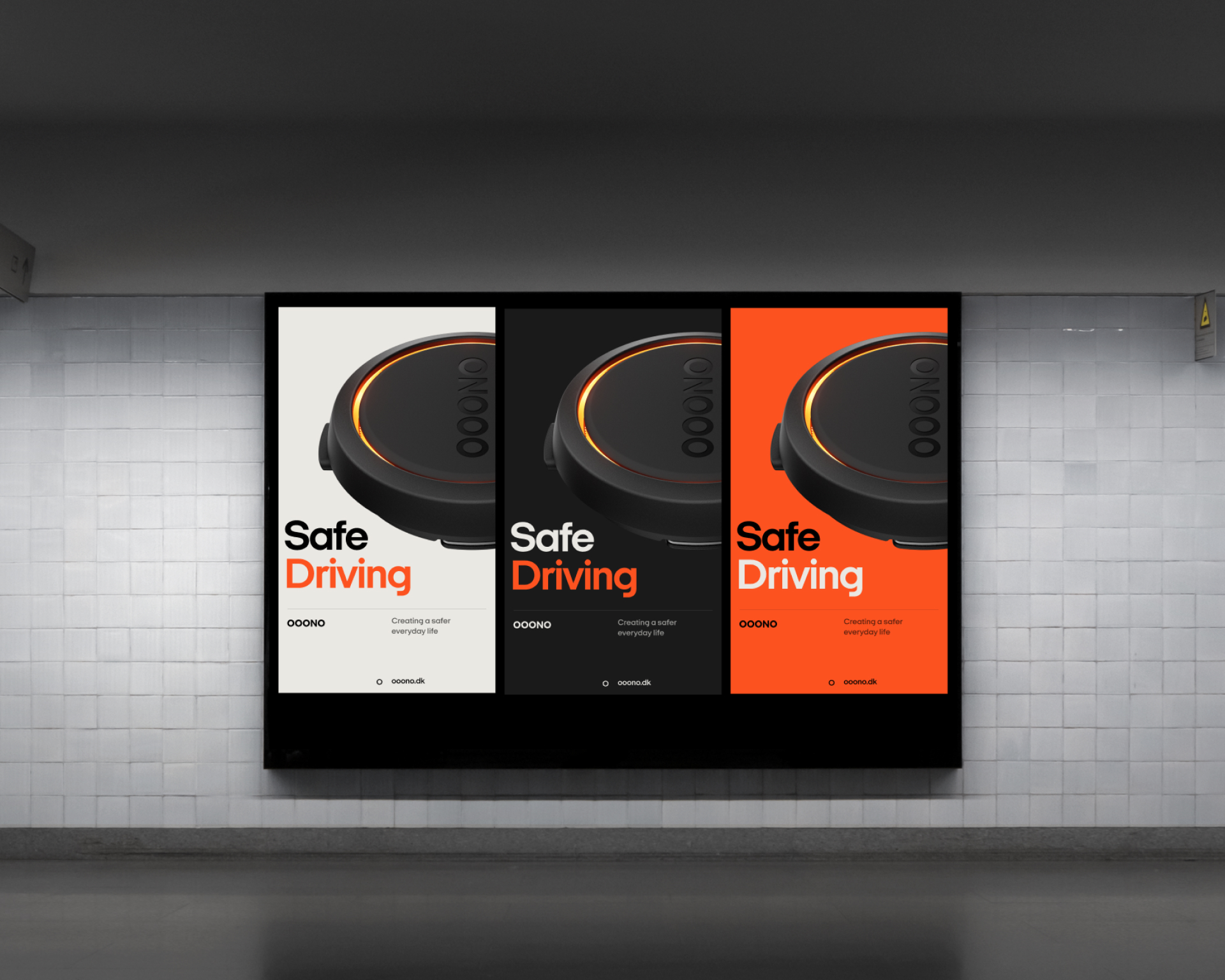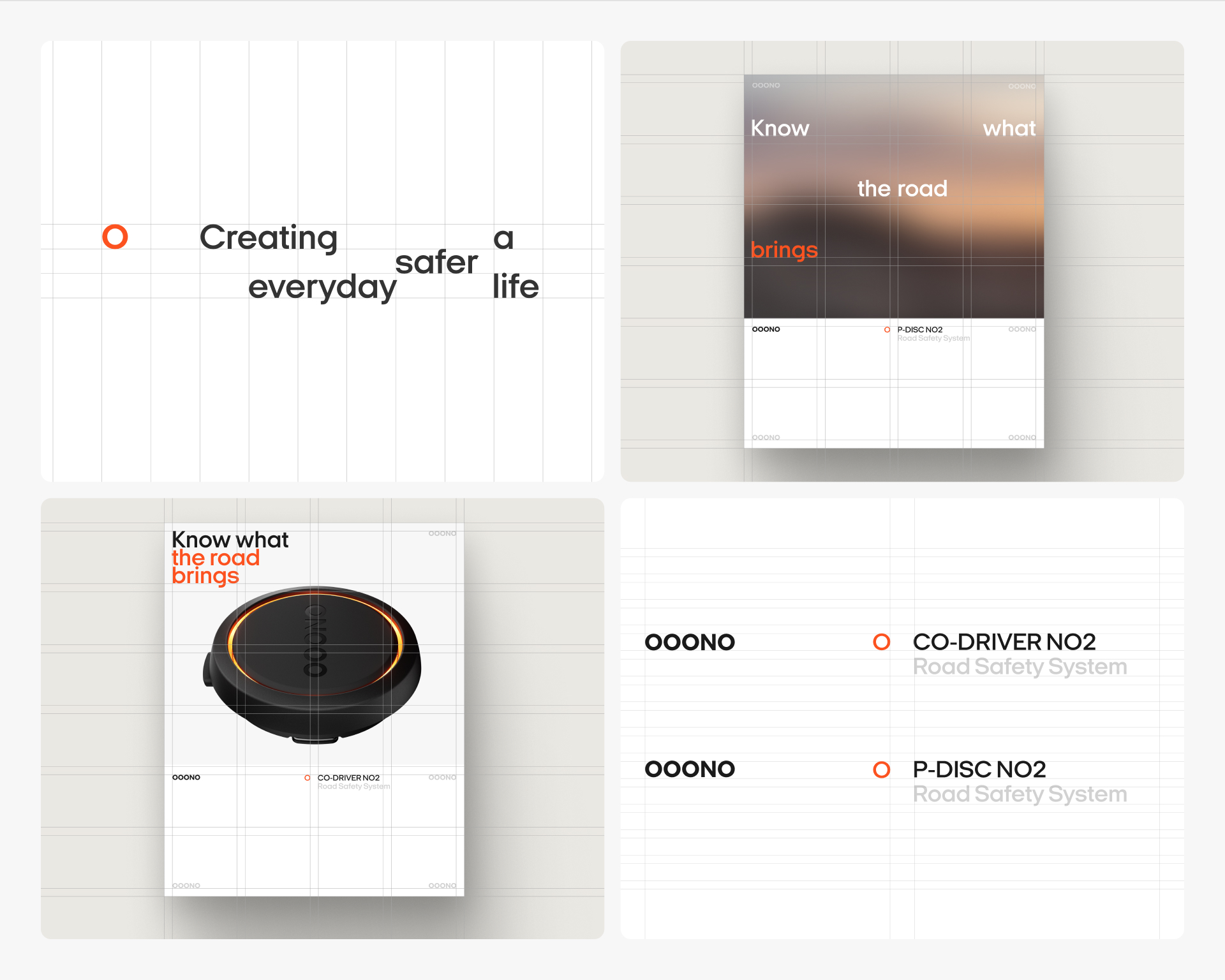 Updated brand identity, web design, marketing materials, and app design created at OOONO, a traffic safety service that specialises in connected devices for an undistracted driving experience. Motion guidelines created in collaboration with Anders Waltz.